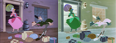 Since there were usually as many as four artists credited for “color and styling”, it’s not always clear who did what sequence. In the case of Mary Blair, a lot of her concept art has been published. As always, I do not attempt to attribute any decision to one individual artist but solely like to analyze what is in the film (or the low quality DVD*, in this case).