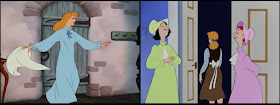 | The sisters in the prologue, reconstructed from two screenshots. Together with Cinderella's dress they form a triad of pastel red (pink), blue and yellow. |